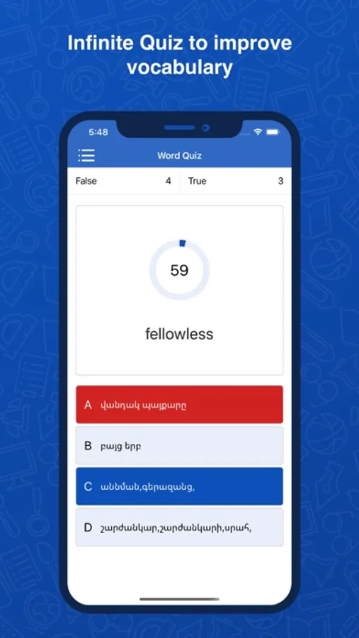 3- The best feature of our app is users can play the quiz of words. It has no limit, you can play it as long as your wish.