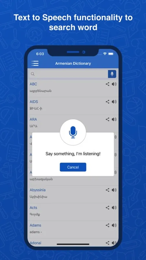 2- In Armenian Dictionary: Translator app, Users can search the word by their voice and read word meaning in both Armenian and English.