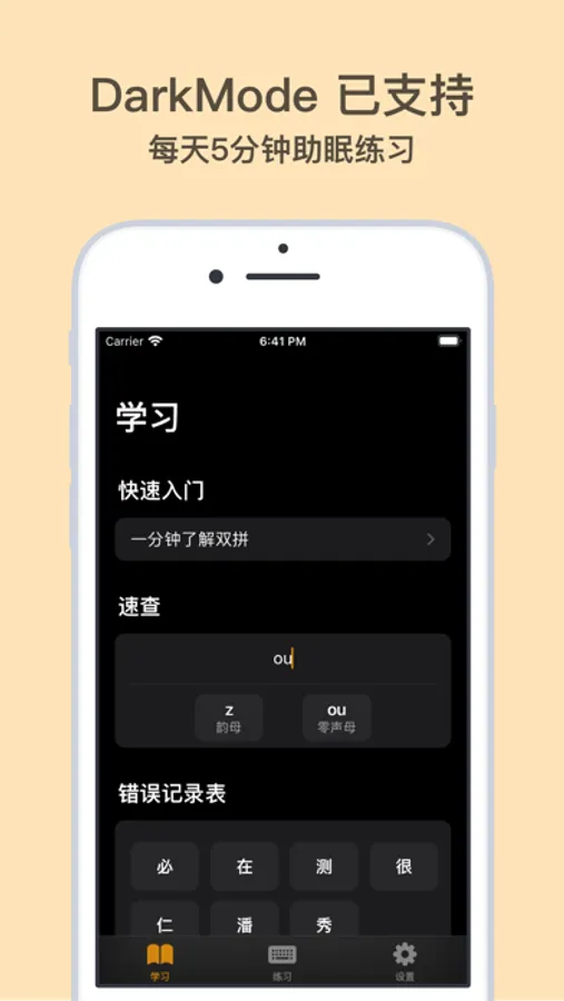 事情是从两年前我刚接触双拼输入法开始的,当时发现并没有一款软件来帮助初学者入门双拼,双拼作为一种在难度与速度上平衡很好的输入法,感觉不太被人知道很可惜,它应该被更多人知道被更多人使用,在这种背景下开发一款专门的双拼练习软件的想法的种子就种下了,再到后来学习了苹果全新高效的UI开发框架SwiftUI,用了两个周末的时间完成了试试双拼的第一个MVP并上架App Store。