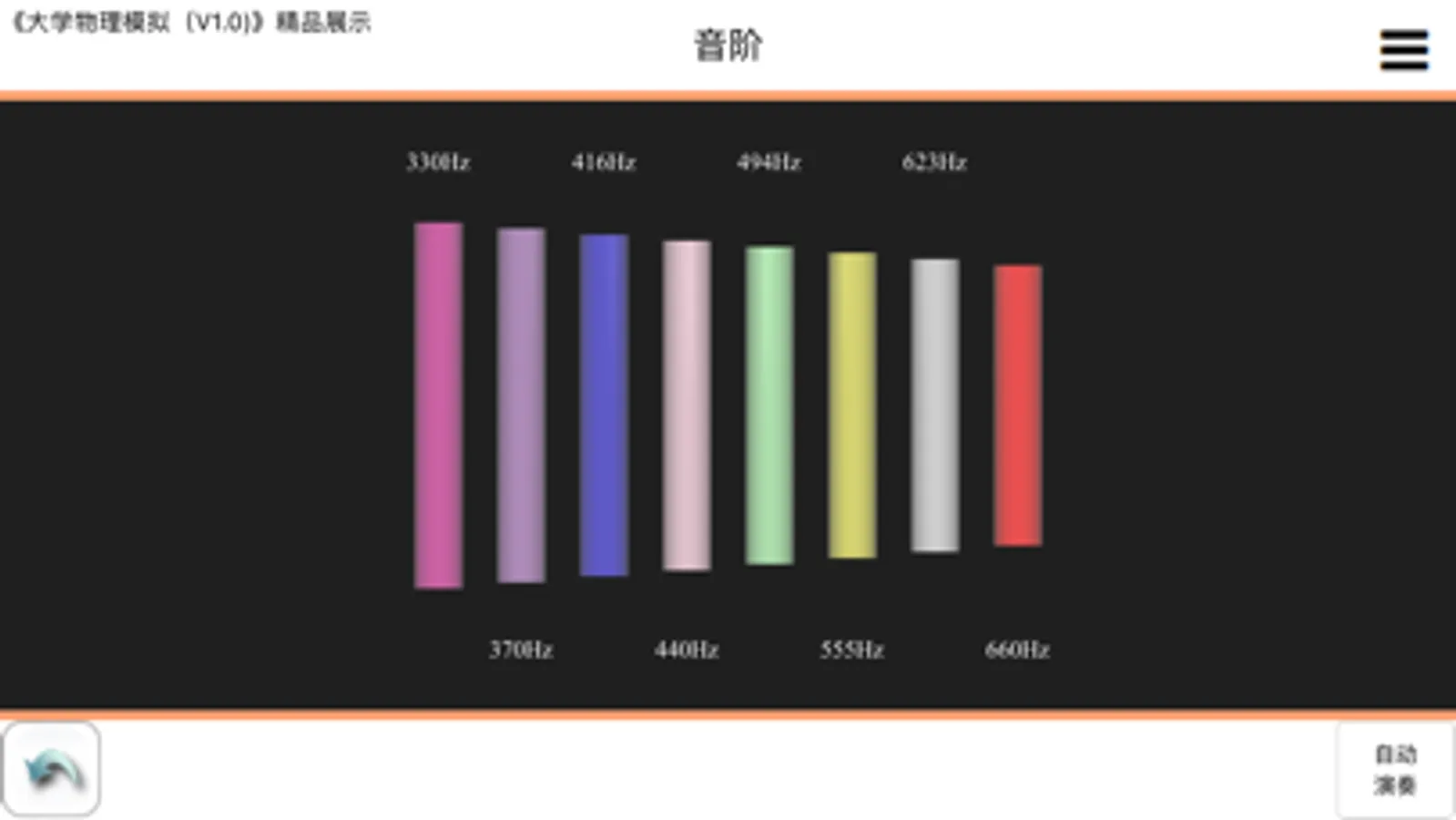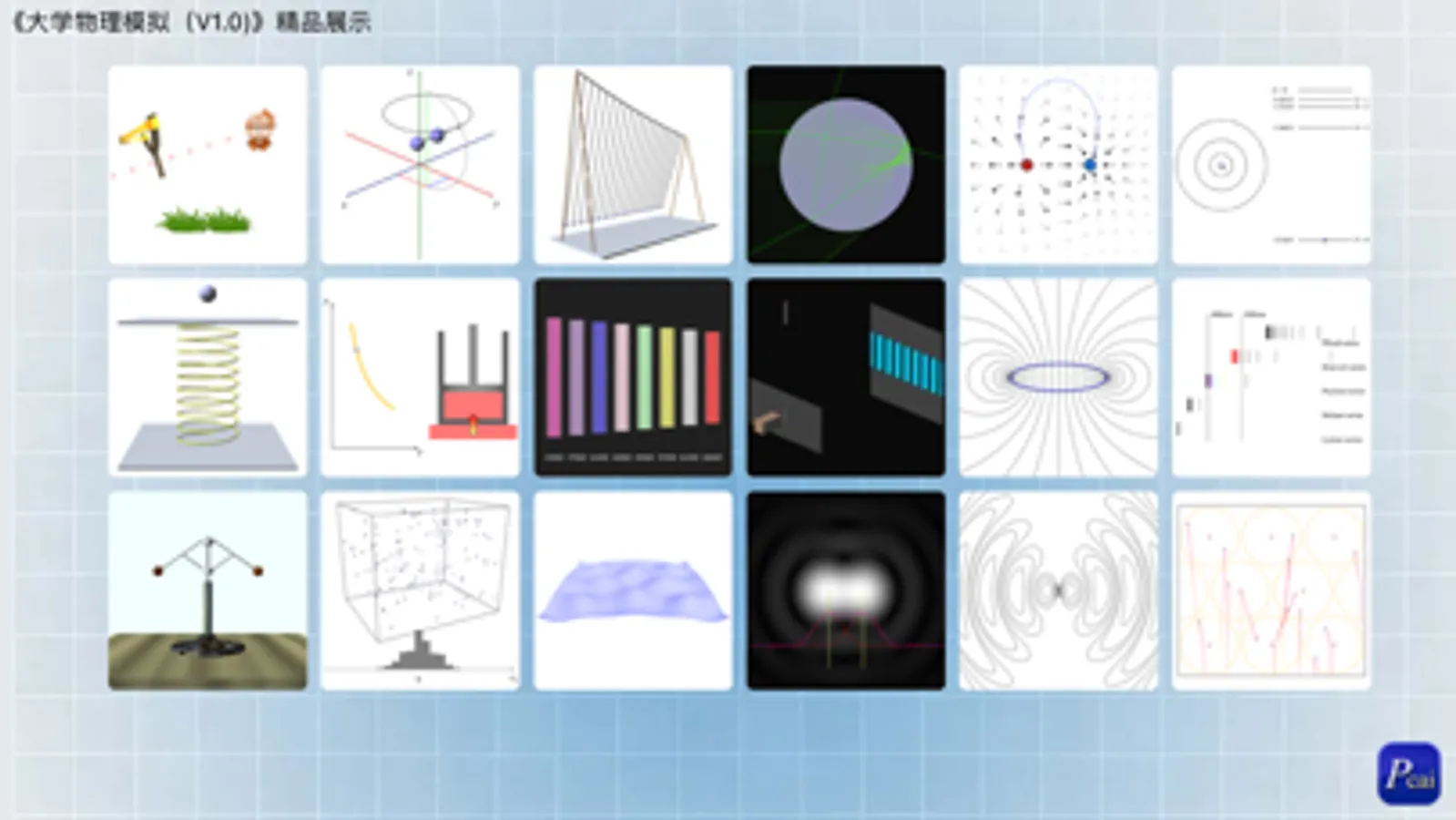 《大学物理模拟》内容涵盖力学、热学、振动与波、电磁学、光学和现代物理学等多个学科。本系统包含80多个物理模拟演示课件,利用三维图形、实时动画、碰撞检测、音效仿真和光的干涉条纹仿真等方式呈现物理图像、每个课件均可调节参数,便于观察不同参数情况下物理图像(现象)的变化。所有物理图像(现象)都是采用科学计算的方法实时演算获得,再通过计算机的多媒体编程技术来呈现。