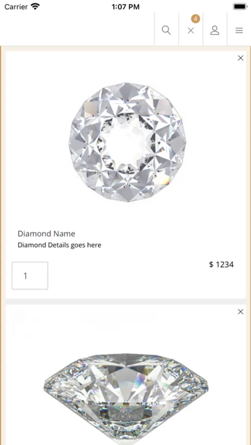 the app allows you to search for the diamond based on your search choices, add what you like to the cart and based on your choices it will show you the suppliers who has the Dimond you are looking for so you can contact and buy them