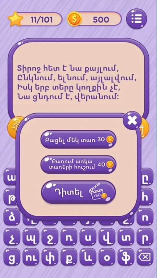 Try to correctly guess the 101 interesting riddles s included in the game.