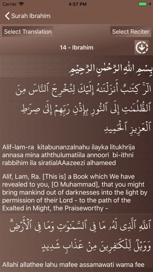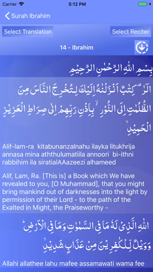 Read and listen verse by verse recitation of Surah Ibrahim (سورة ابراهيم ) in beautiful voices of many International reciters. The only app with so many reciters, translations and themes. And its free.