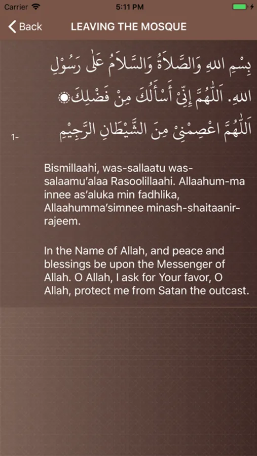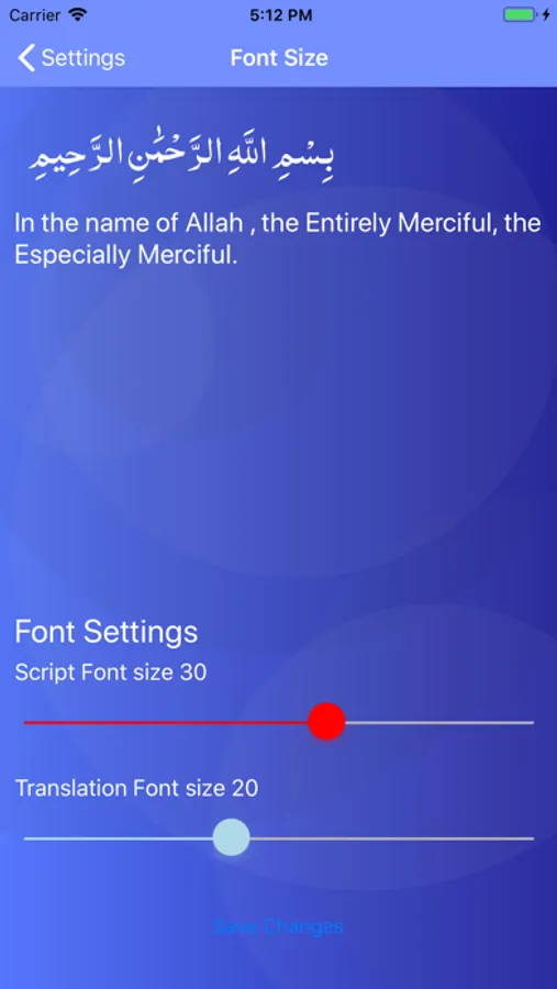 • Adjustable font size for both Arabic script and translation.