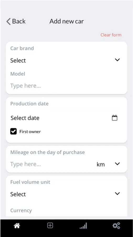 You can select your own currency, measurement unit and one of the following languages: English, Deutsch, Polski, and Español. Your car expenses data is stored in the cloud, so you can easily access your car expense data from multiple mobile devices.