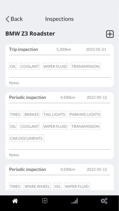 Regular inspections are key for your safety and to keep the car in good health condition. In a few steps you can add and monitor car inspections including daily checks or regular inspections governed by country/state or daily check. The predefined inspection checklist includes most of the critical equipment like brakes, lights, horn, mirrors, seatbelts, tyres, and windshield wipers. In the regular check checklist you can mark items like fluid levels/change – engine oil, brakes, clutch, and auto transmission fluids (if relevant). Using the checklist you won’t forget to take documents, first aid kit or spare keys.