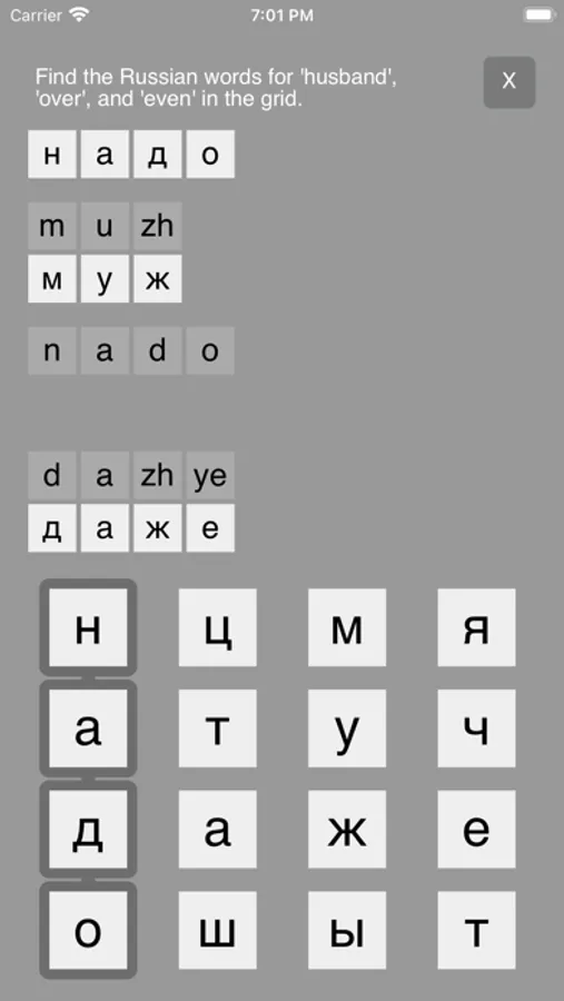 The primary goal of this app is to be able to effortlessly transliterate from Cyrillic to Latin script and vice-versa (and along the way you'll learn a few common Russian words).