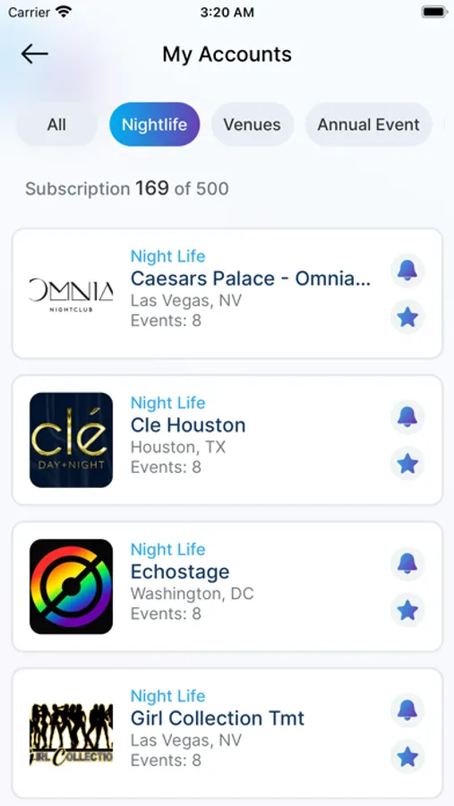 My Venue – Consumers to follow contacts and events to receive notifications.