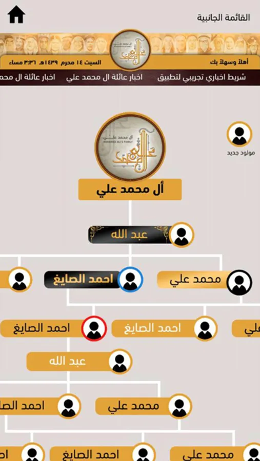 يتيح التطبيق لمستخدميه التسجيل والدخول عليه فقط لمن ينتمي لابناء العائلة