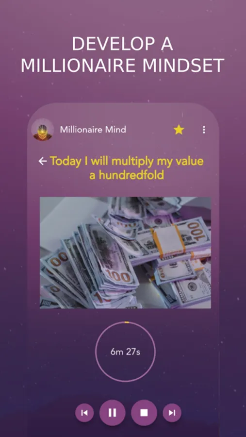 Millionaire Mind app contains positive declarations and affirmations about yourself, your life and business success. It is a practice of positive thinking that will help you believe in the possibility of your dreams and aspirations and affirm your dream life. This app contains The 10 scrolls from the greatest salesman in the world.