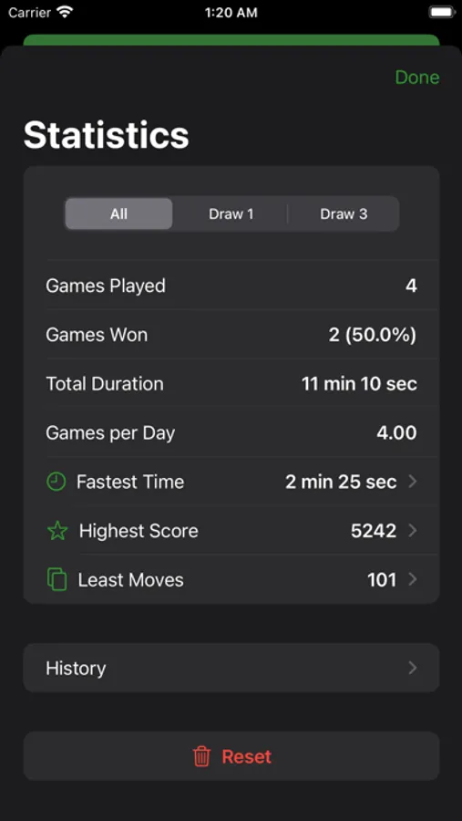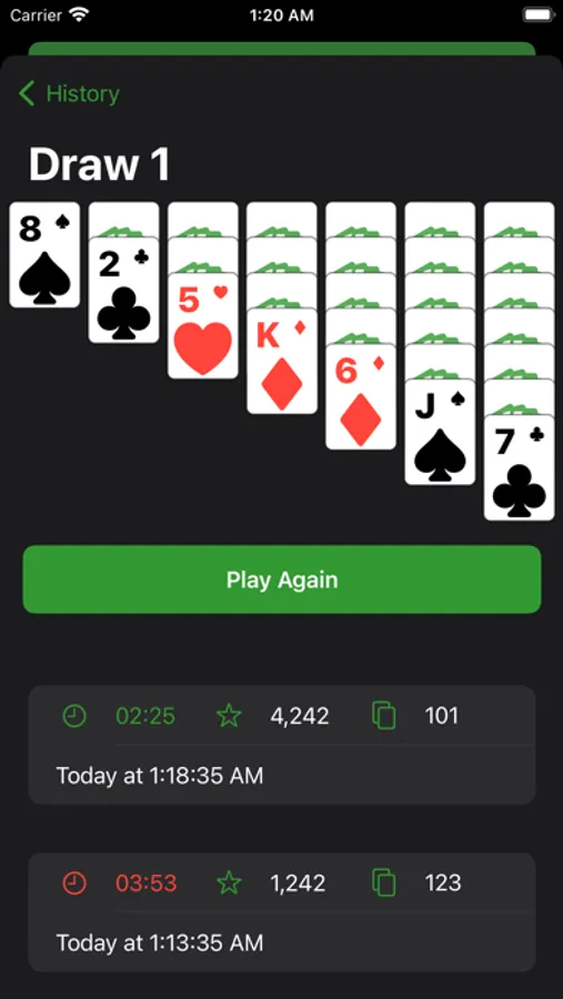 App stores your previously played games and statistics and even synchronizes them across your devices. You can re-play any previously played game with a touch of a button.
