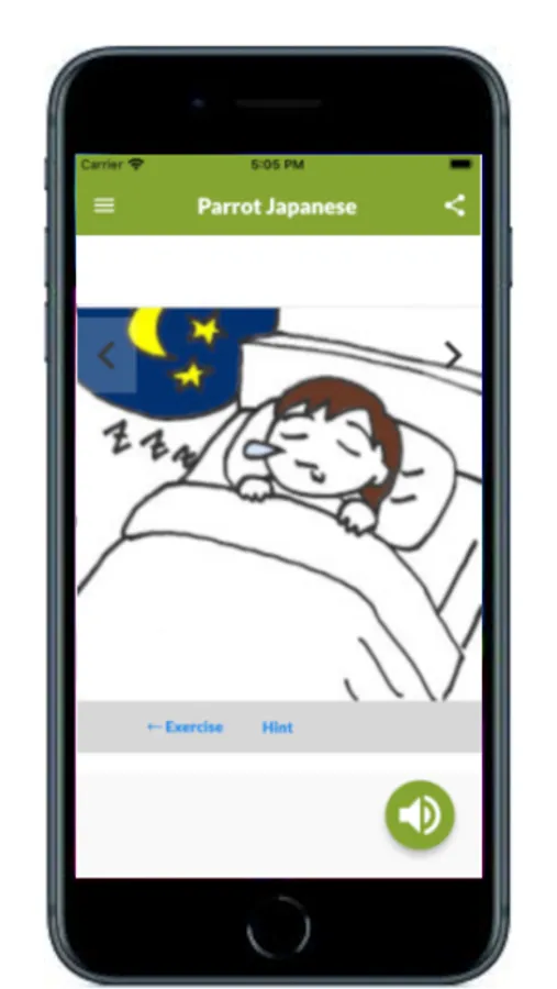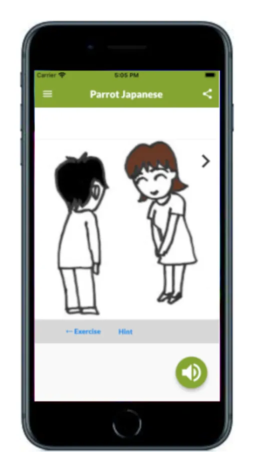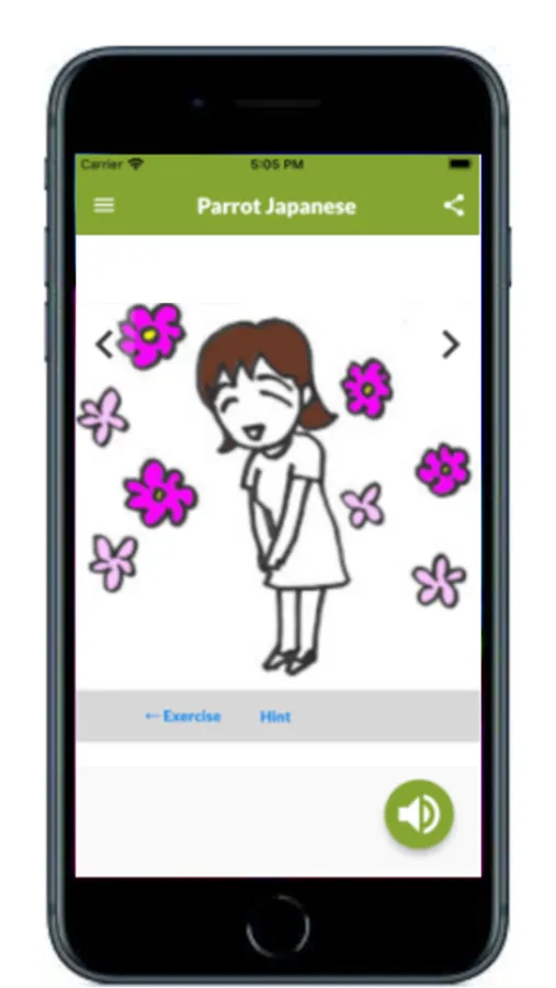 So, this application software Speak Japanese Like Parrot is designed by its specification in which you listen to the voice and pronounce after it, and the meaning is displayed after the pronunciation is applicable.