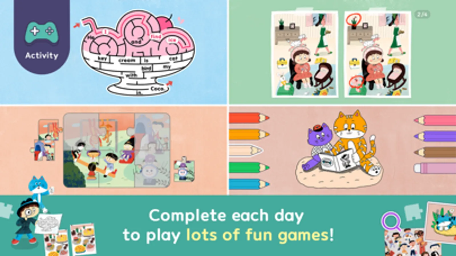 ▶ Replay Mode: Practice through play, various games after completing each daily study.