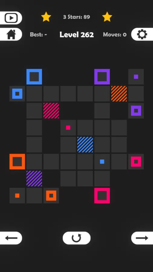 How do you play? Strategically maneuver all squares of the same color onto their corresponding striped target to complete the level. Play through hundreds of expertly crafted puzzles which include varying grid sizes, shapes, and difficulty.