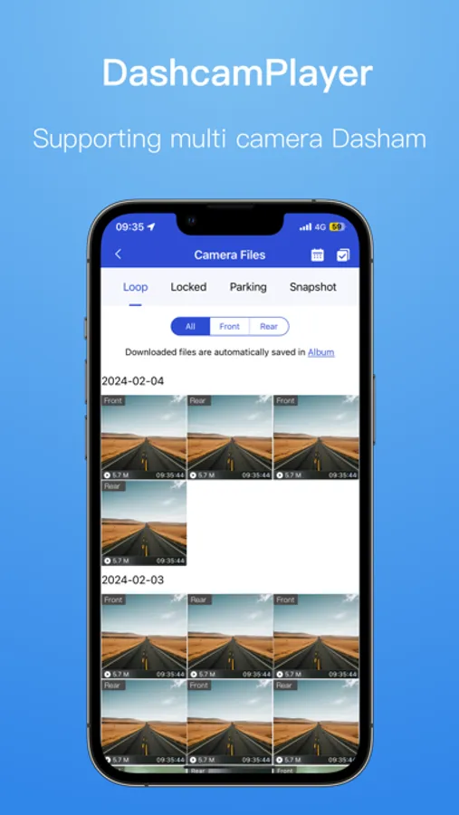 To quickly connect to the dashcam, download and play videos and image files from the dashcam device.