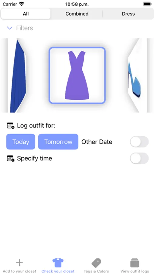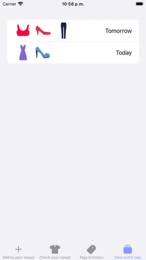 Tidy Closet is your best tool to find, organize, and classify your clothes like a virtual closet on your device. You can use it every day to help you choose your outfit for the next day, and also to choose your look based on the colors or style you want to wear!