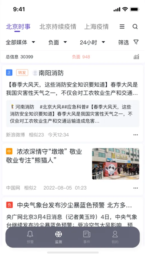 1.实时预警:强大的数据支持,根据人工智能的研判,并将符合条件的信息,第一时间通过多渠道告知用户,方便用户实时知晓。