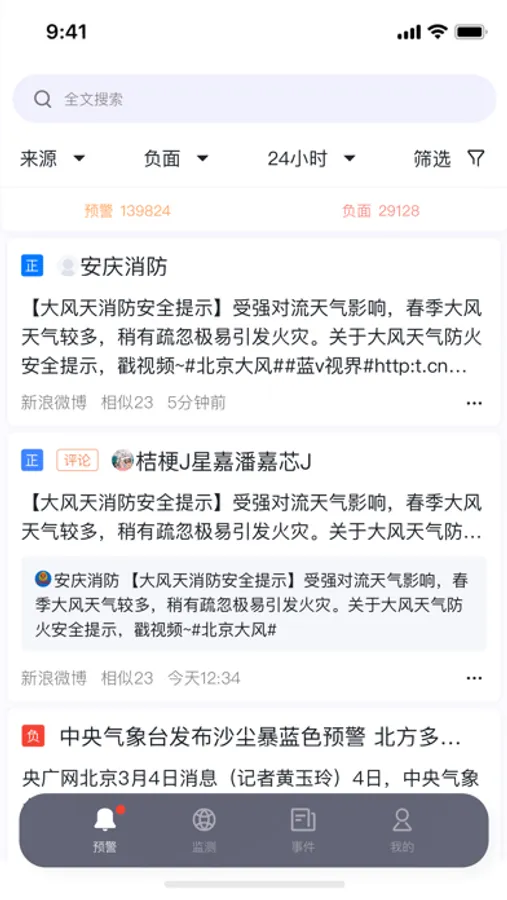 2.全面监测:支持用户对主题方案的相关设置,可根据不同业务场景需求查看对应主题场景的舆情数据,同时可对监测数据进行多维度可视化统计。
