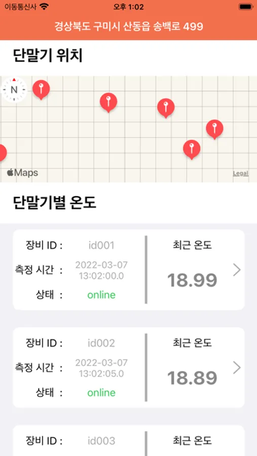 환경경자원화시설의 스팟 별 실시간 온도 모니터링 앱입니다.