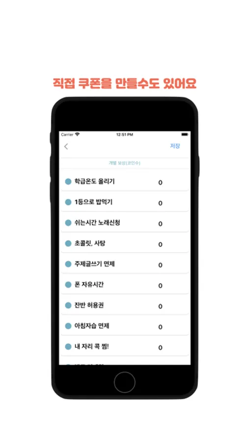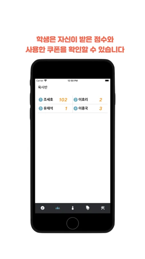 선생님이 점수를 부여하고 학생은 자신의 점수를 충족하는 가상의 쿠폰을 사용하기 위한 여러가지 편리한 기능을 제공합니다.