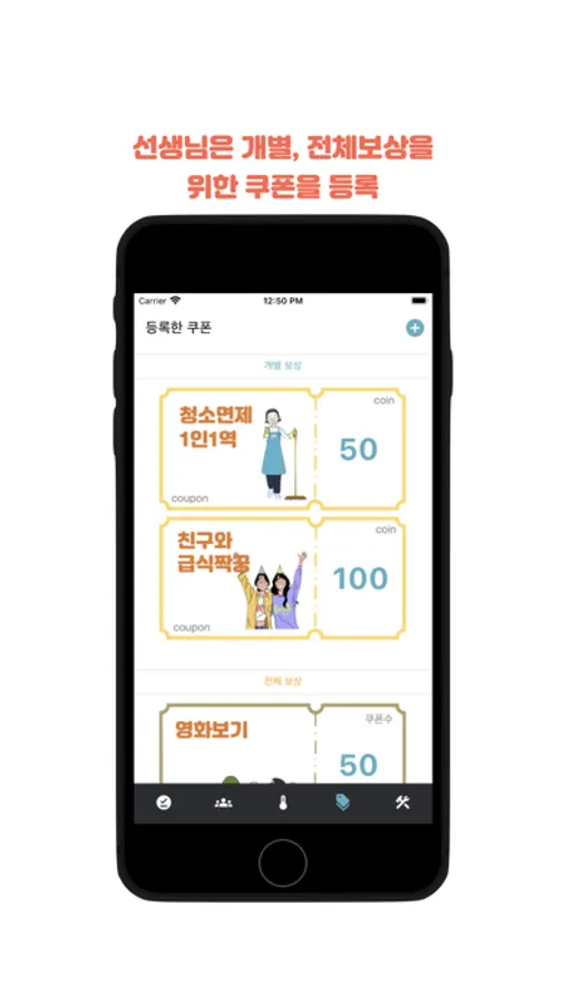 5. 학생들은 선생님이 주신 점수를 모아 쿠폰을 사용할 수 있습니다.