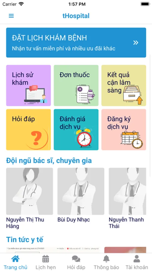 Ứng dụng dành cho bệnh nhân đặt lịch khám bệnh.
