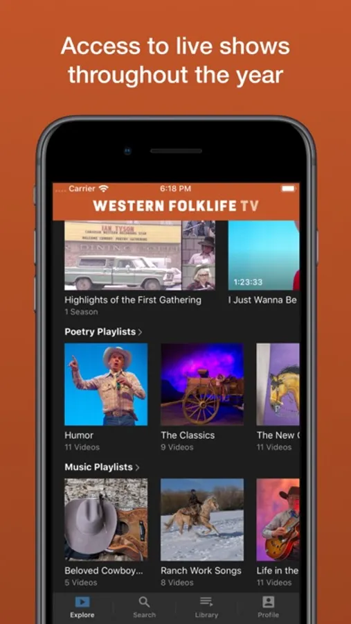 • Full shows from the National Cowboy Poetry Gathering featuring artists like Waddie Mitchell, Baxter Black, Ian Tyson, and so many others