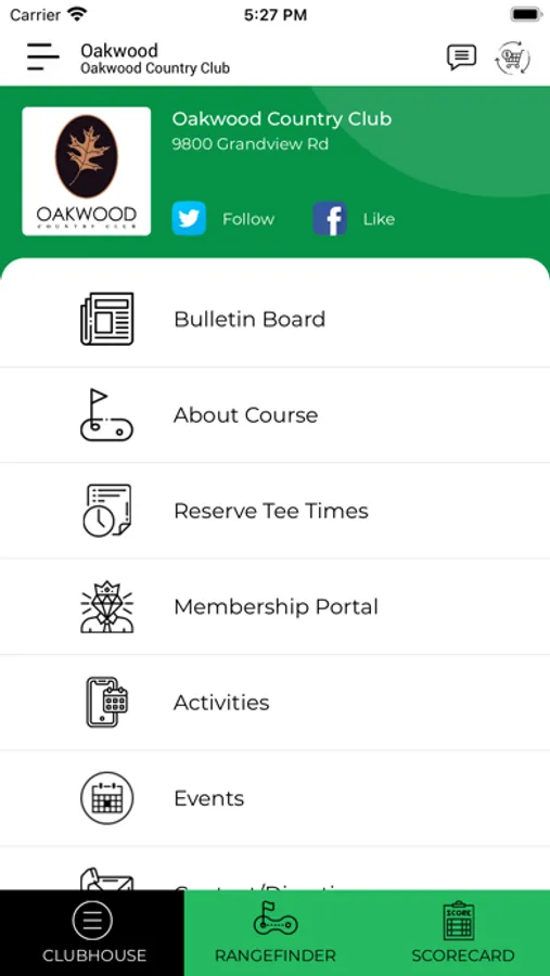 Oakwood CC gives you access to an on-course rangefinder, live scoring system, course information, weather updates, tee-time booking service, and messaging systems functions. Additionally, the Oakwood CC app may be used to sign up for events, view your membership portal, order food and beverage, and receive course promotions at Oakwood CC.