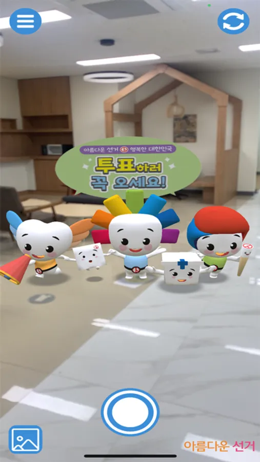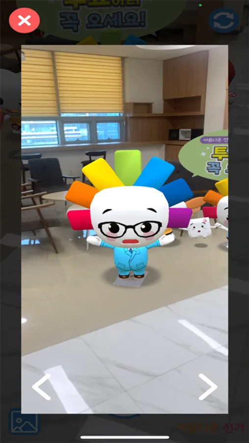 선거전시체험관 곳곳에 숨어있는 참참, 바로, 알리와 함께 사진을 찍어보아요!