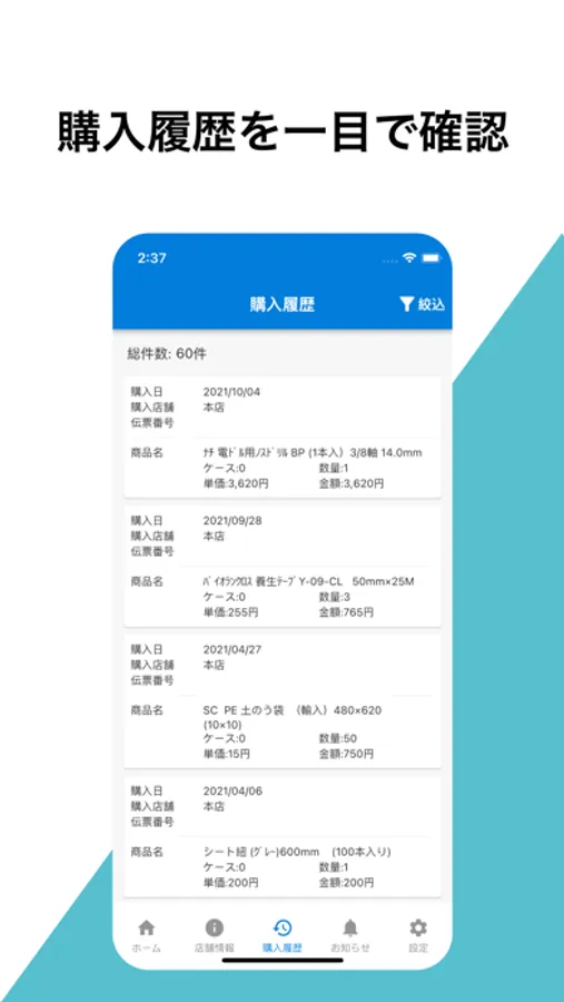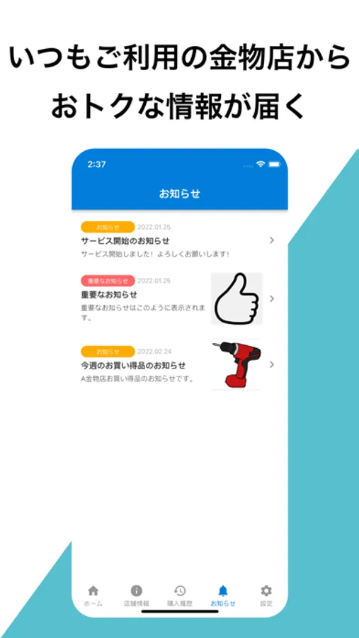金物店専用販売管理システム「MUSASI」と連携した金物店利用のお客様向けアプリです。