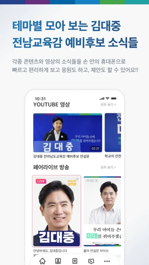 # 김대중 후보가 전하는 소식을 가장 빠르게 확인하고, 공유할 수 있습니다.