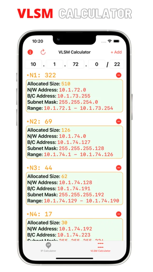 VLSM Calculator features:
