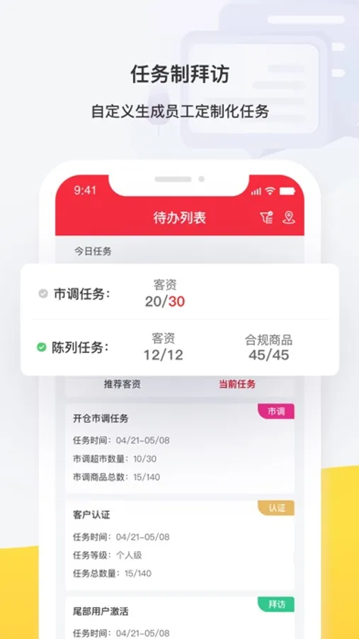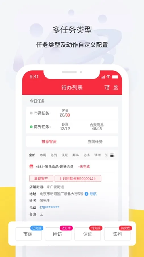 任务型CRM,通过完成分发任务,完成任务,任务效果分析,实现店铺客户及潜在客户维护。
