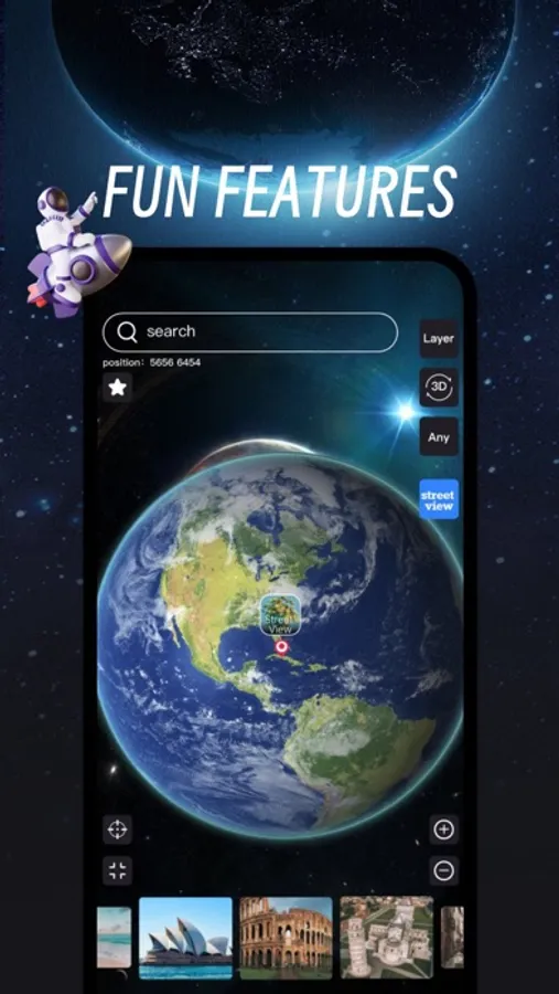 Stay at home to enjoy the local street view, high-definition satellite real map. There are popular scenic spots, high-rise buildings, anytime, anywhere to enjoy different scenery! You can rotate the real scene map Angle in real time by manipulating the Angle of the mobile phone. Some maps support direction change. If you can head north, south, east and west, observe the nearby scenery.