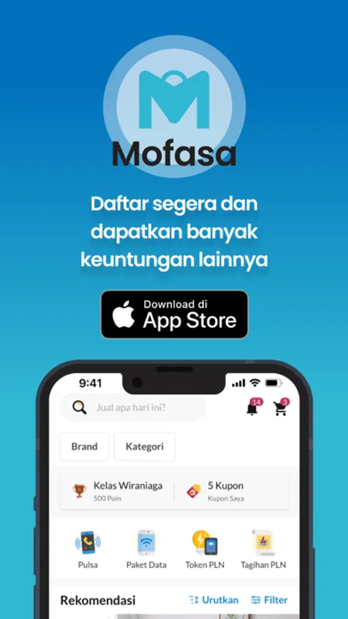 Mofasa adalah platform untuk reseller yang memudahkan semua transaksi dan informasi. Tidak perlu lagi repot untuk melihat katalog, stok produk, serta melakukan order secara manual, cukup dengan Mofasa dan semua kebutuhan dapat diakses dalam satu aplikasi.
