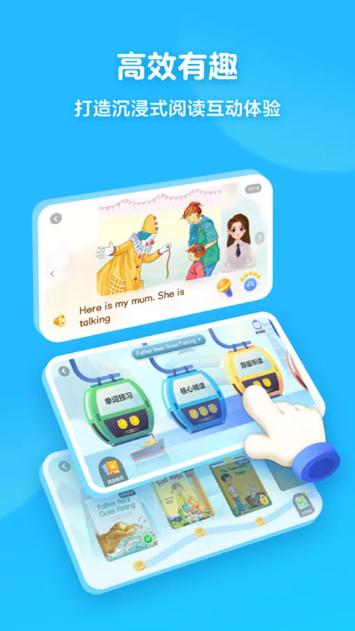 天天读拥有国际领先的英语跟读识别功能,附带地道的美式配音,以及卓越的语音识别技术,通过孩子自己进行绘本跟读,帮助孩子自信开口。