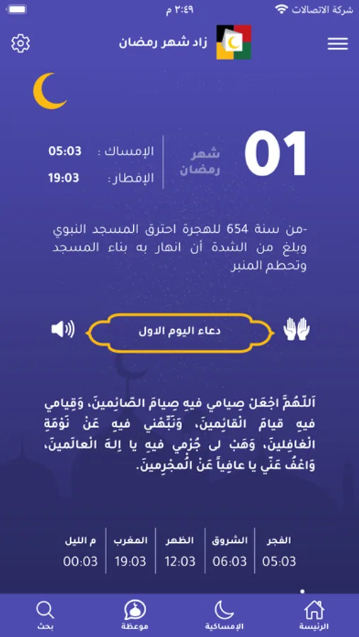 - تحديد وقت الامساك و الافطار و اوقات الصلاة