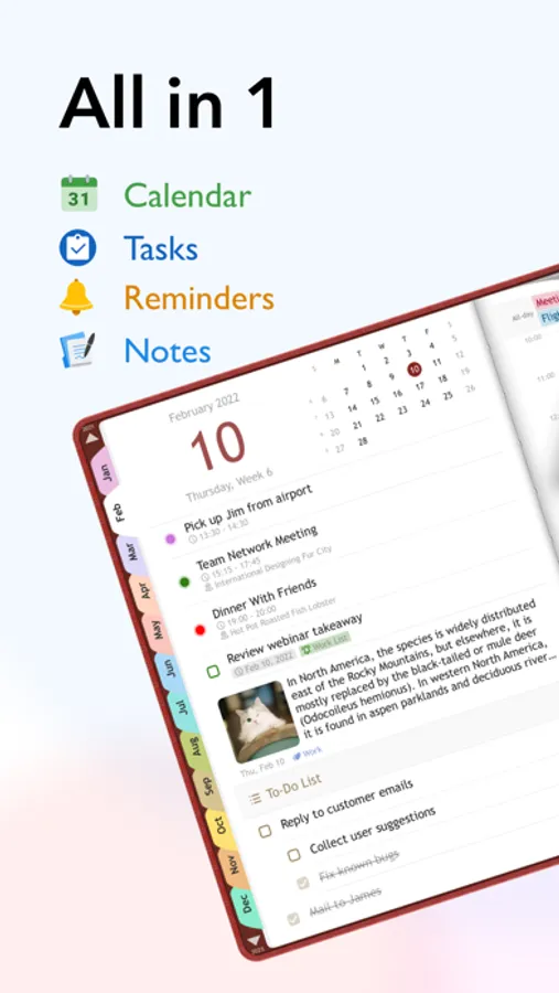 - Integrate calendars, tasks, reminders, and notes into one place at a glance.