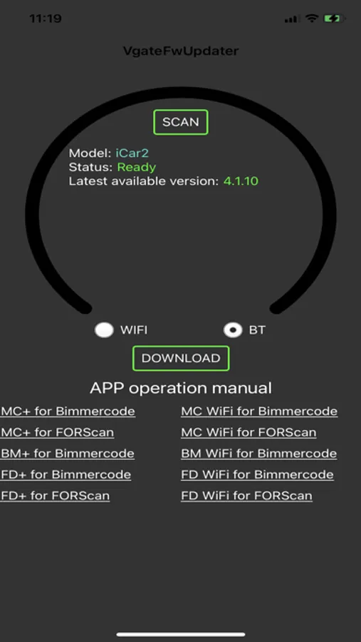 VgateFwUpdater is an upgrade tool that can upgrade the firmware of Icar01(iCar 1/2/3), Icar03(iCar Pro), MIC3311(vLinker BM), MIC3312(vLinker FD), MIC3422(vLinker FS), MIC3313(vLinker MC) chips.