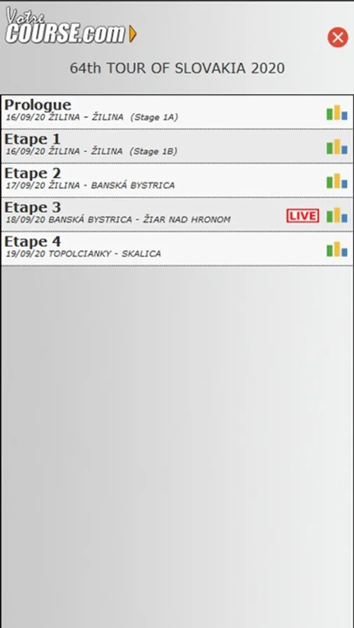 Cette application permet de visualiser les classements de la société VotreCourse, et de suivre les classements live