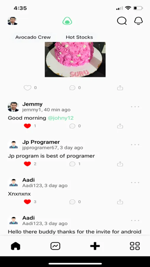 ● Social: Follow any and every account on avocado to make new connections. When you follow an account, you have access to all their content, posts, and public group pits. Pits are where you can have seamless group interaction