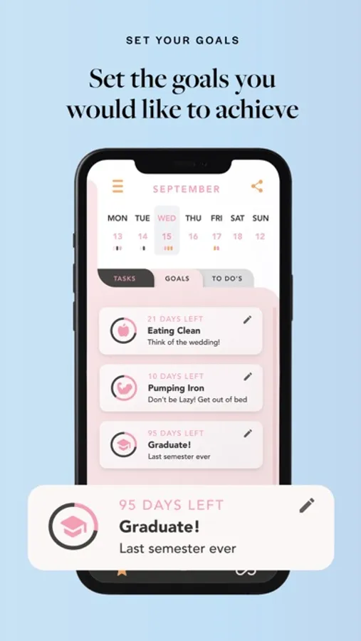 Goal setting: Set goals you'd like to achieve to a specific date and time