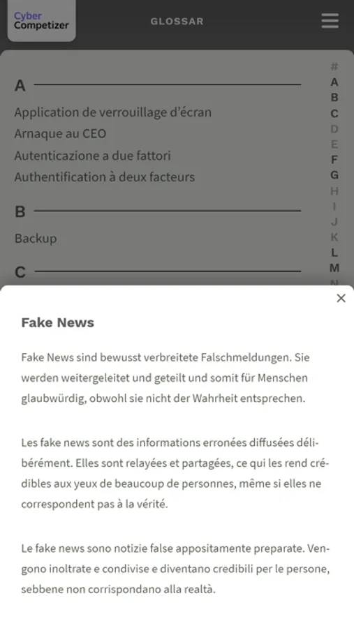 Im Cyber Competizer kann zwischen deutscher, französischer und italienischer Sprache gewählt werden.