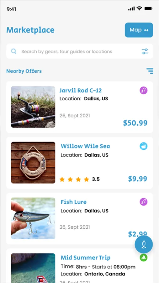 If you have some fishing gear that you want to pass on, you can upload a couple of pictures, give a description and set a price. Interested buyers will reach out to you and you can sell your goods outside of the application.
