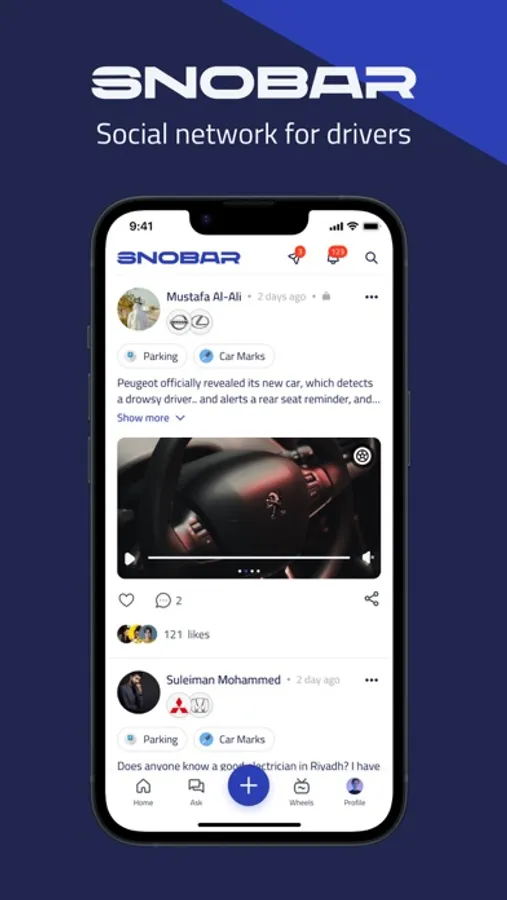 Design a garage for your car, upload its photos, and enter its color, engine type, gear type, additions, and features of it, so SNOBAR provides a space for you to post your diaries, share your photos, and interests, and a (Garage) dedicated to your car, so you can mention it in your posts and questions, and enable others to know more about the car you own.