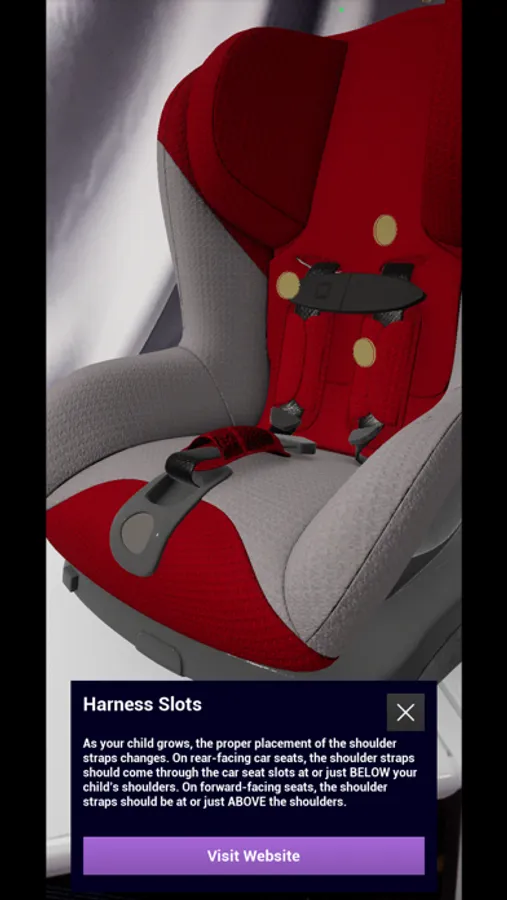 Car seats save lives and greatly reduce injury. Regular car seat checkups and ensuring proper fit along with growing adjustments are important in keeping children safe in cars. Enjoy an educational and entertaining way to understand the various safety features of a 5-point harness through your smart phone. We use your device's camera to display a virtual car seat in your real world space.