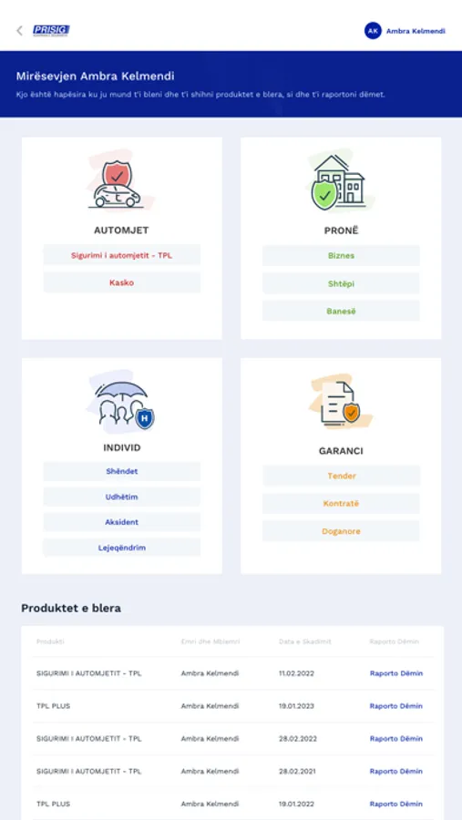 Mundësi raportimi të dëmeve dhe kërkesave për kompensim për çdo policë aktive.