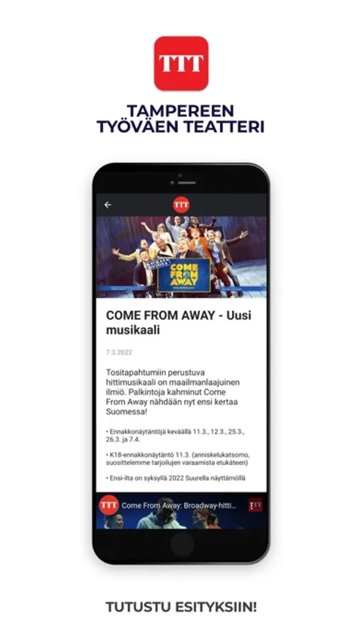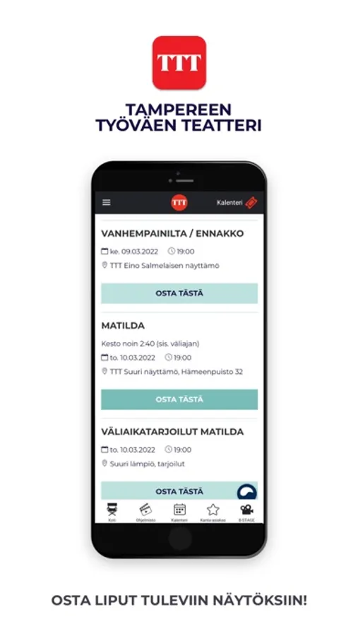 Tampereen Työväen Teatterin sovellus on lippukauppa taskussa: Voit tehdä verkko-ostoja suoraan sovelluksesta. Rekisteröitymällä kanta-asiakkaaksi saat tuntuvia teatteritarjouksia. Sovelluksessa voit tutustua ohjelmistoon ja näet, mikä on ajankohtaista juuri nyt. B-Stagelta löydät kiinnostavia haastatteluita, uusimmat videot ja muuta kiinnostavaa taustamateriaalia näyttämöltä ja back stagelta.