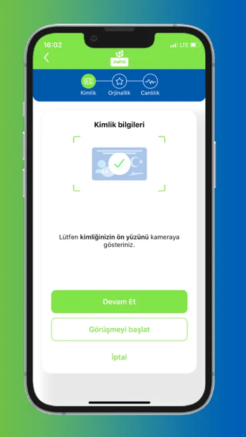 Info Yatırım Görüntülü Hesap Açma yeni nesil bir müşteri tanıma uygulamasıdır. Info Yatırım Görüntülü Hesap Açma ile yeni tip(çipli) kimlik kartınızı veya pasaportunuzu kullanarak kimlik bilgilerinizi onaylatabilir ve sözleşme süreçlerini başlatabilirsiniz. Info Yatırım Görüntülü Hesap Açma uygulaması ile hızlıca Info Yatırım hesabı açabilir ve hızlıca yatırım yapmaya başlayabilirsiniz. Uygulama üzerinden müşteri temsilcisi ile yapılacak kısa bir görüşme ile birkaç dakika içerisinde Info Yatırım müşterisi olabilirsiniz.