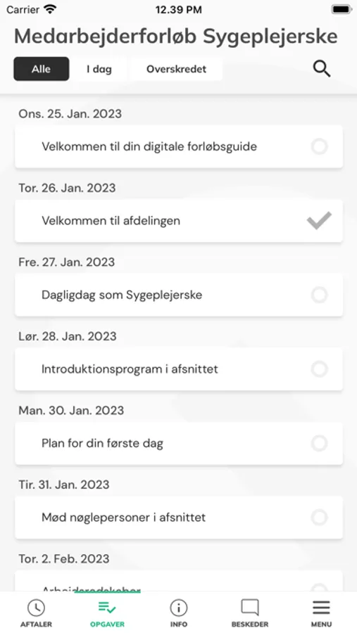 Guide-app'en fører dig igennem dit aktuelle forløb ved hjælp af indhold tilrettelagt af udbyderen. Det kan være indhold i form af vejledninger, orienteringer, påmindelser og huskelister.